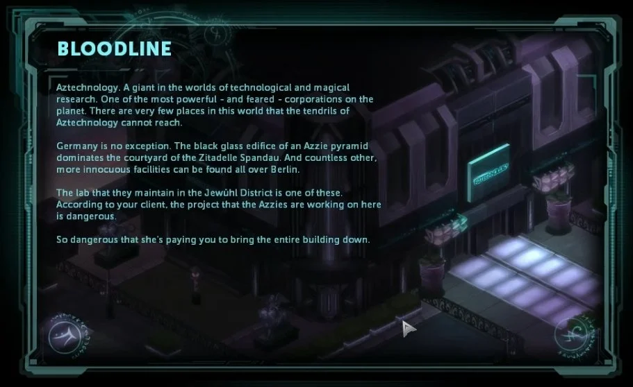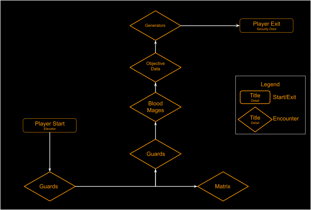 This quest is extensive, to say the least, and not every detail is covered here. Links to a Walkthrough and Let's Plays are available by following the links above. What’s highlighted is how I took a central concept, a stacking set of decisions, fit it into the world of Shadowrun and then brought it all to life through a large and diverse set of interrelated encounters.