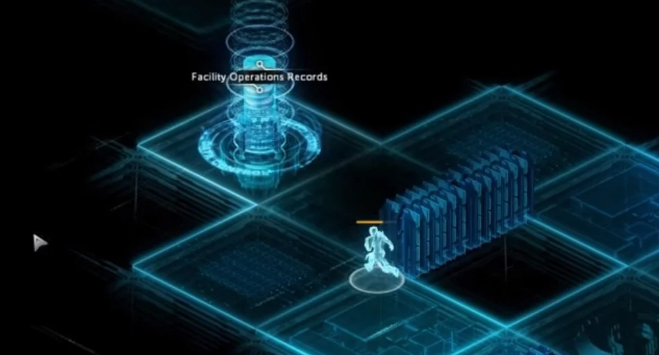 Next you find yourself in some seemingly unassuming corporate offices and need to reach the Elevator to get to the lower floor.