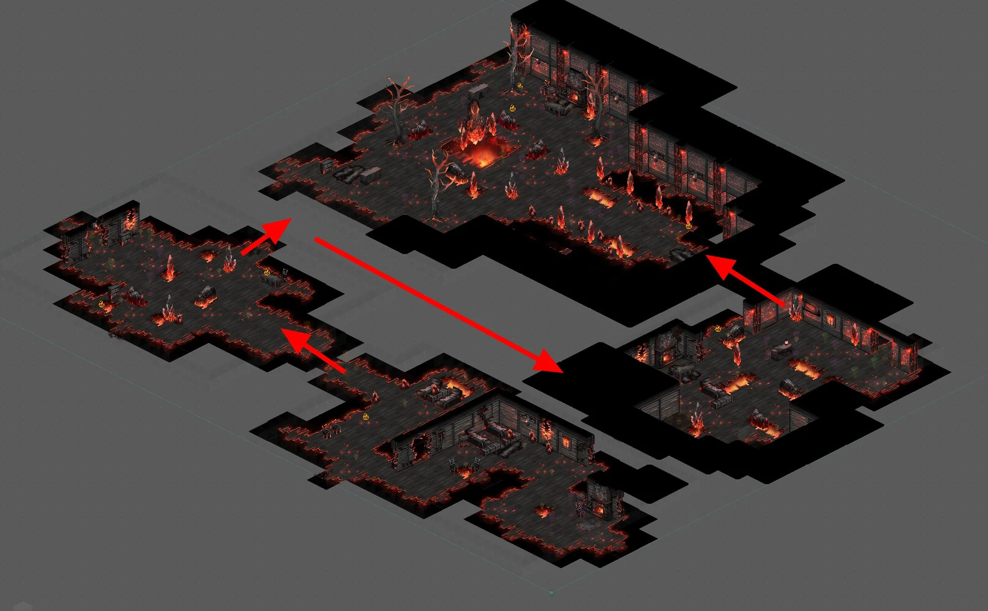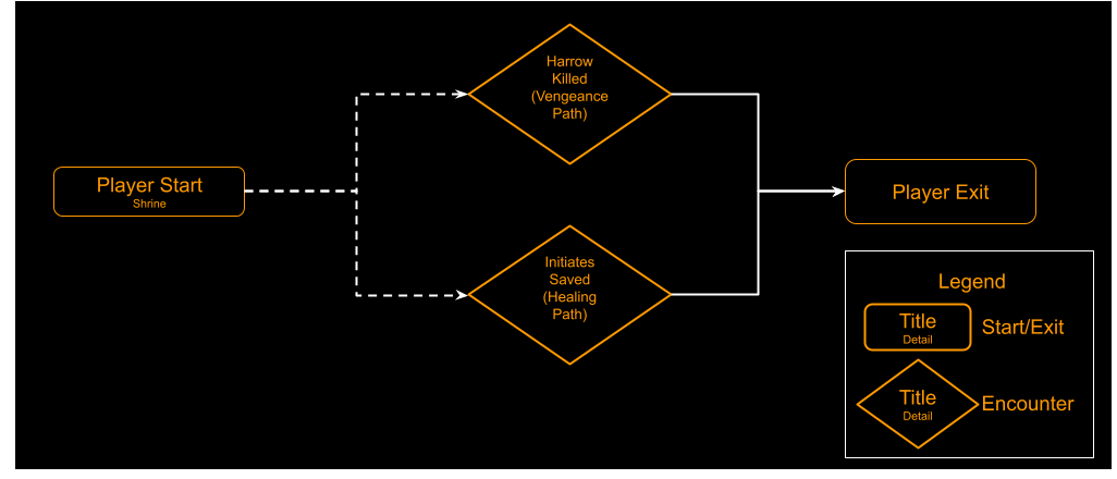 For the beats in between the entrance and confrontation with the Heart and Harrow I wanted enough to make this feel like a place that you adventure through but respect pacing. I asked for two unique enemies (in addition to Harrow and Heart) and a small but new and bespoke tile set for this space.