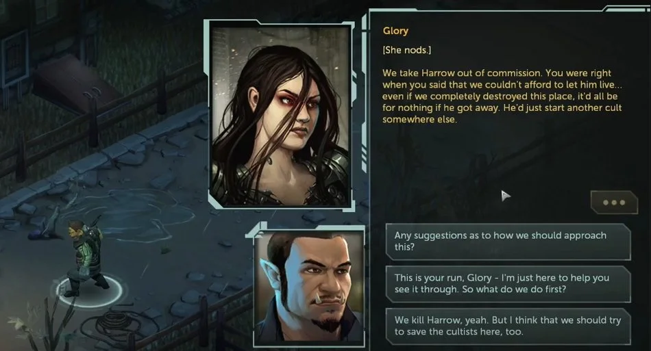 The approach I took in this quest, as did Harebrained in general in the series, is that we don’t judge the player for their choices and aim to build a satisfying experience whatever path they choose.