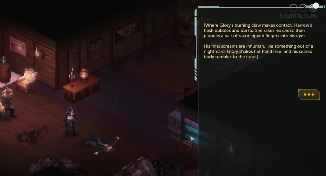Despite setting things up to encourage players along an uncomfortable journey into aspects of Glory's past and to confront menacing encounters I set things up with degrees of success so you were not likely to get the worst outcome with Marta, that of being forced to kill her. On the flipside I wanted you to really have to work to get the best outcome which is having her join you in the final confrontation against Harrow.